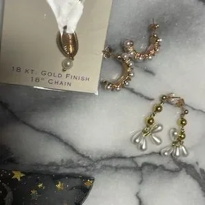 Jewelry bundle 18 KT gold chain necklace real pearl crowie shell