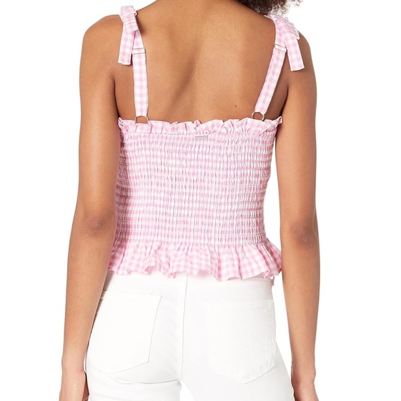 NWOT GUESS Women's Sleeveless Rihana Gingham Tank Top ruffle top with bows in XS