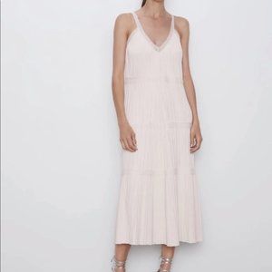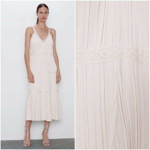 ZARA BANDAGE KNIT PLEATED MIDI DRESS WITH LACE DETAIL