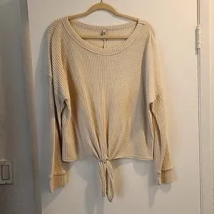 Z Supply long-sleeved knitted blouse has a knot at the bottom center of the shirt. This comes in size L. looking for a loving new home in your closet! Offers welcome!