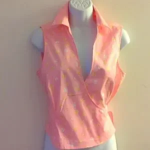 Lilly Pulitzer wrap top before 2006. Ptnk yellow big print NS top that wraps. Very good condition. No Rip No stains