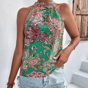 Boho Floral Paisley Print Halter Top