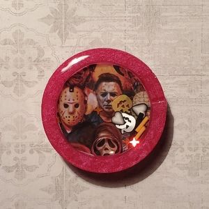 handmade with resin, this shaker phone grip is perfect for all my horror fans! move it around to see all the accessories inside move also! 3m backing