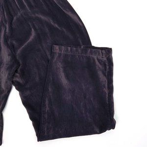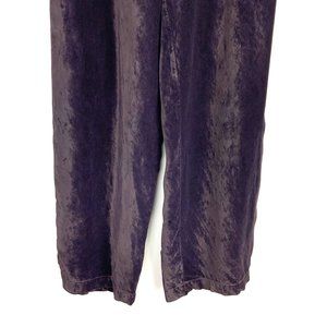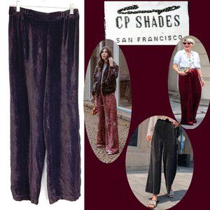 Vintage 90s Dark Purple/ Plum Crushed Velvet Wide Leg Pants. High rise, elastic waist, wide legs. Made with CP Shades classic silk rayon velvet. 100% rayon, machine wash. Relaxed fit. Made in USA. Excellent condition.
