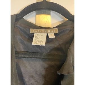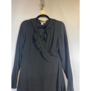 Isabella Bird Womens Sz 8 Silk Faux Wrap Ruffled V Neck Aline Dress LBD Black D9