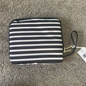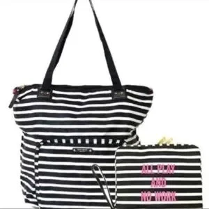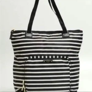 New with tags Kate Spade Rosemary Bon Voyage tote in black/cream! All play and no work zipped up like a small package! When unzipped it is a large nylon tote that has a top zipper closure, zipper front pocket, zipper on inside of tote pocket! Beautiful bag! Easy to clean! Smoke free home!
