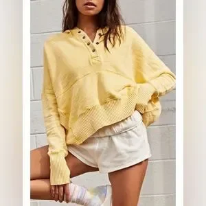 NWT Free People FP Movement Honey Dove Swaying Sunflowers Yellow Pullover Hoodie