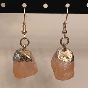 Handmade genuine pink and gold peach nugget stone drop earrings with gold colored wire.