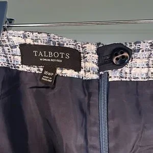Talbots Woman Petites Blue Tweed Skirt with Ruffle. Hidden Zipper and Button on the back.Size 16WP 33% cotton 20 polyester 18% acrylic