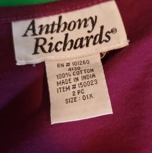 Anthony Richards 2 Piece Women's Long Sleeve and Pant Size 1X Red
