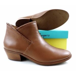 Jack Rogers Sadie Low Heel Ankle Boot Booties Leather Oak Size 7.5