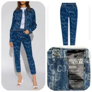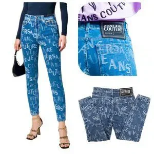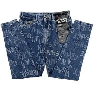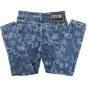 NWT $525 Authentic Versace Couture allover logo stretchy cotton jeans 27