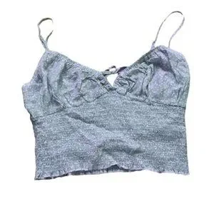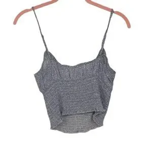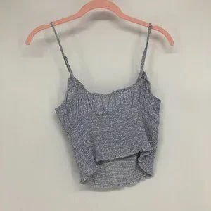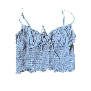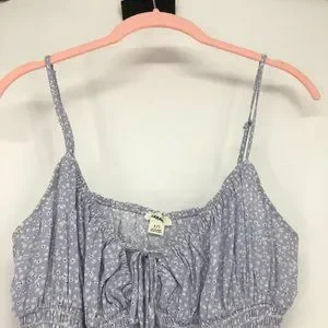 Garage periwinkle blue white floral shirred tie front crop tank top SP