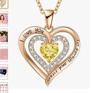 This heart necklace for women is engraved with the words "I love you for always and forever", symbolizing love and affection for someone. The CZ in the middle of the pendant is also a heart-shaped design.