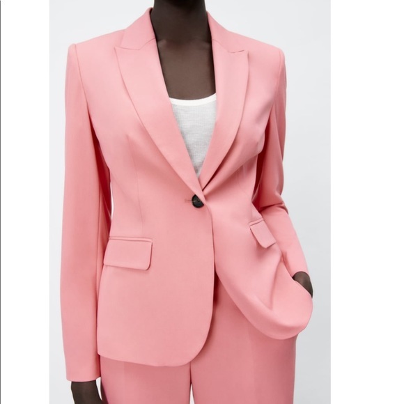 Light pink fitted blazer with single button closure