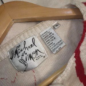 vintage michael simon red and white heart cardigan