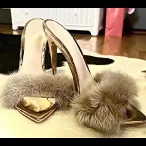 COPY - NWT Women's Fur Fluffy Mules High Heels,rose gold or gold available!