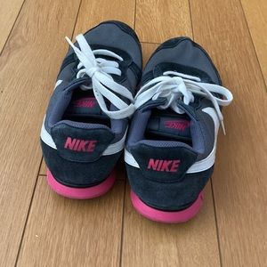 Nike eclipse sneakers in good used condition! The main wear is at the bottom of the shoes. The dark colored rubber by the toes is more pink now. The bottom of the shoes is hard instead of rubber so there’s less traction. The video shows this better than I can explain! Please let me know if you have any questions