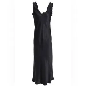 Tibi Ruffled-Trimmed Washed Satin Midi Dress