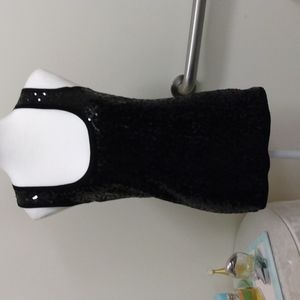 This small Cyrus tank is covered with black sequins on front and back is solid black very soft fabric. NWT. This has stretch.