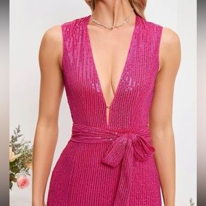 Luxe plunging V neck slit thigh party formal evening prom wedding sequins dress