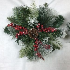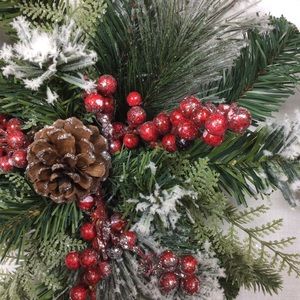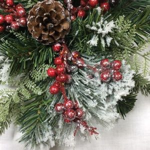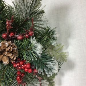 Ashland Christmas Noel #2 Christmas Wreaths, Wall Decor, Size 13 inches. Brand New with Tags. Green Pine with Frosted Tips and Red Berries with Pinecone.