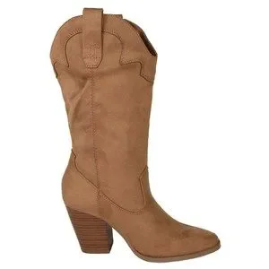 * Soda Women Cowgirl Cowboy Western Stitched Boots Pointy Toe Mid Claf Suede High Heels Akito-S
