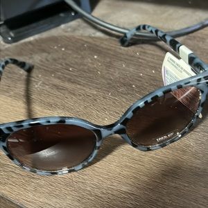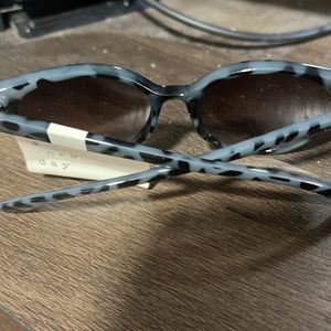 This is a beautiful pair of blue & black print sunglasses from a new day. These are adult sunglasses one size fits most! 100% UV protection. Brand new with tags!