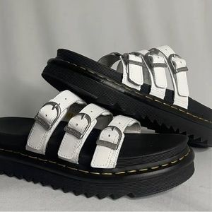 Dr Martens Blaire Slide Womens White 3 Strap Buckle Platform Sandals