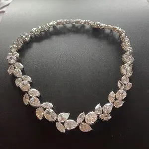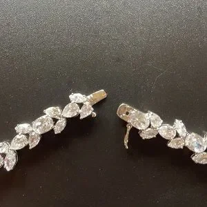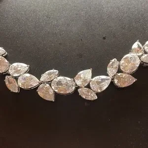 Pictures and video do not show the amazing quality and shine of this necklace. All cubic Cerkoney a stones set in a rhodium plated setting. Safety clasp this necklace is perfect for a bride or anyone who loves shine
