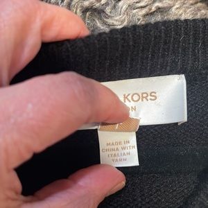 Black and white cashmere sweater with rushhed sleeves and front. Very warm and cozy but very cool and modern