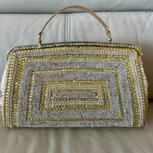 Fabulous Upcycled Evening Bag This Statement Piece is elegant and rare given its size . Loaded with rhinestones, pins, charms and crystals, this gorgeous bag is a showstopper. Very little wear.