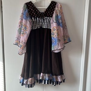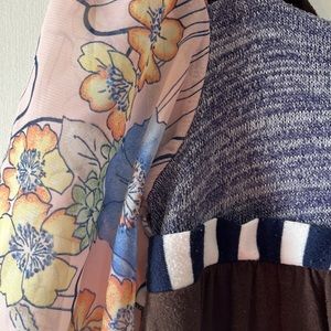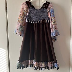 Adorable and comfortable boho style Twirls & Twigs dress size 6X. So many great details! Floral flutter sleeves, polka dots, stripes and a sweet little flower. Good pre loved condition.