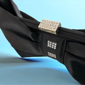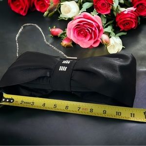 Black satin bow style evening bag with rhinestones