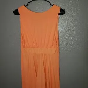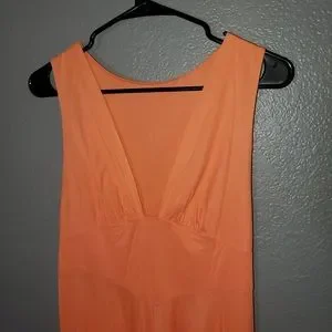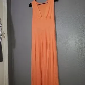 VINTAGE 60/ 70's Maxi Dress Sz 6 V neck sleeveless Tangerine color
