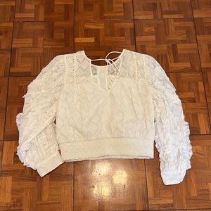 White Long Sleeve Ruffle Peasant Top sz M Anthropologie