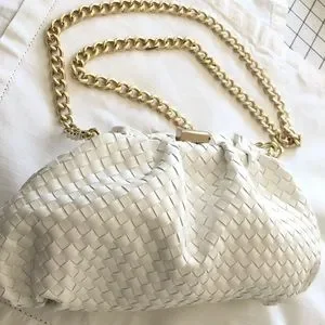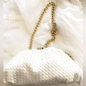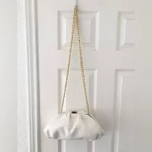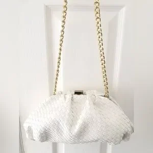 Beautiful & unique White House Black market Clutch with removable Gold chain.