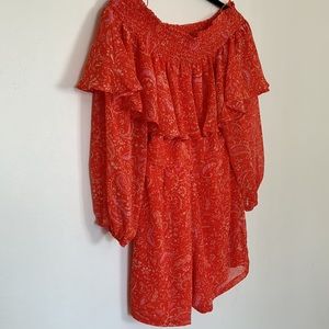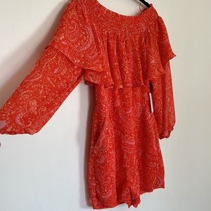 1.State Orange Paisley Off Shoulder Romper NWT