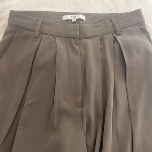 Has pleats at waist and belt loops.