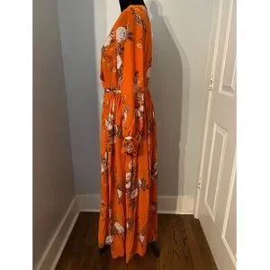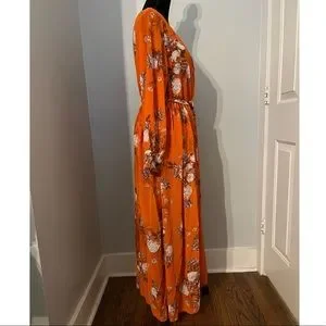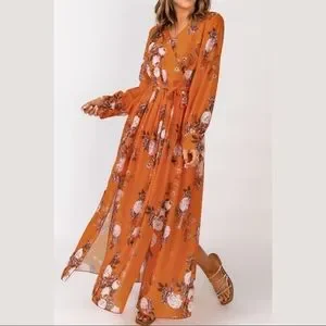 Orange Floral, V-Neck Maxi Dress