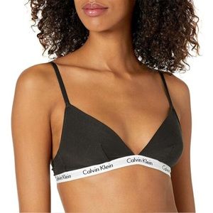 This classic Calvin Klein triangle bralette from the Carousel collection features a minimalist design with the iconic logo band. Soft, stretchy, and ultra-comfy — perfect for lounging or layering under your favorite basics.
