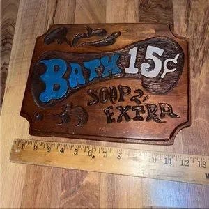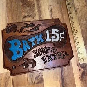 High Quality Vintage Rustic Wood Engraved Bath 15 cents Soap 2 cents Extra Home Decor Wood Sign