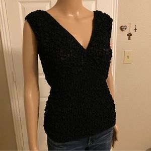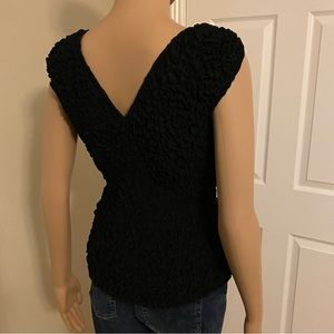 NWOT Gorgeous Vintage Smocked Top. Shapely silhouette, empire waist, plunging V-neck front and back, georgette puckered fabric, elasticized for stretch and delicate texture. Can be dressed up for after 5, worn with trousers, or rock it with denim. Truly unusual and beautiful!