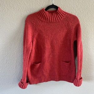 J. Jill Wool Blend Sweater Red Speckled Turtleneck Mock Neck Pockets Size XS