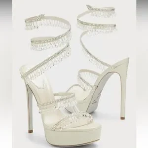Rene Caovilla Chandelier Snake Beaded Crystal Wrap Stiletto platform heels 36.5