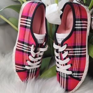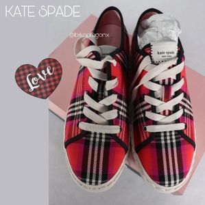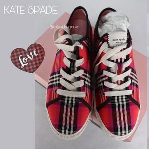 NWT Kate Spade Sneakers Plaid z sister Kicks Lace Up Red Sneaker