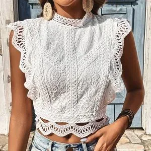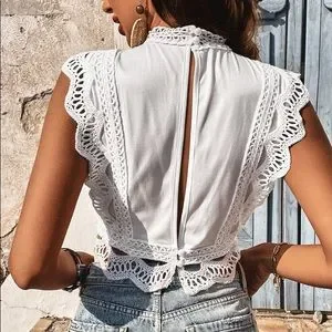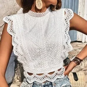 π ELEGANT WHITE LACE CROPPED TOP!