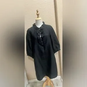 Kate Spade Black Shift Dress Ruffle Collar with Silk Cotton Pockets