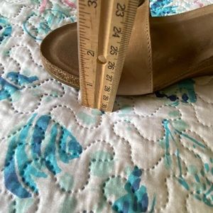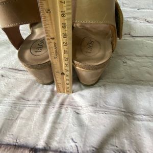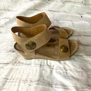 Taos wedges in size EU 38, US 7-7.5. Only worn a few times. They scuff easily. Suede footbed, hook and loop closure. See photos for condition.