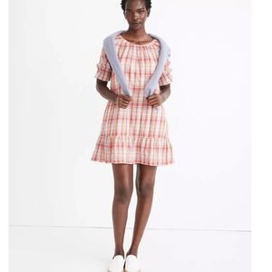 Madewell Plaid Ruffle-Sleeve Popover Mini Dress sz XL